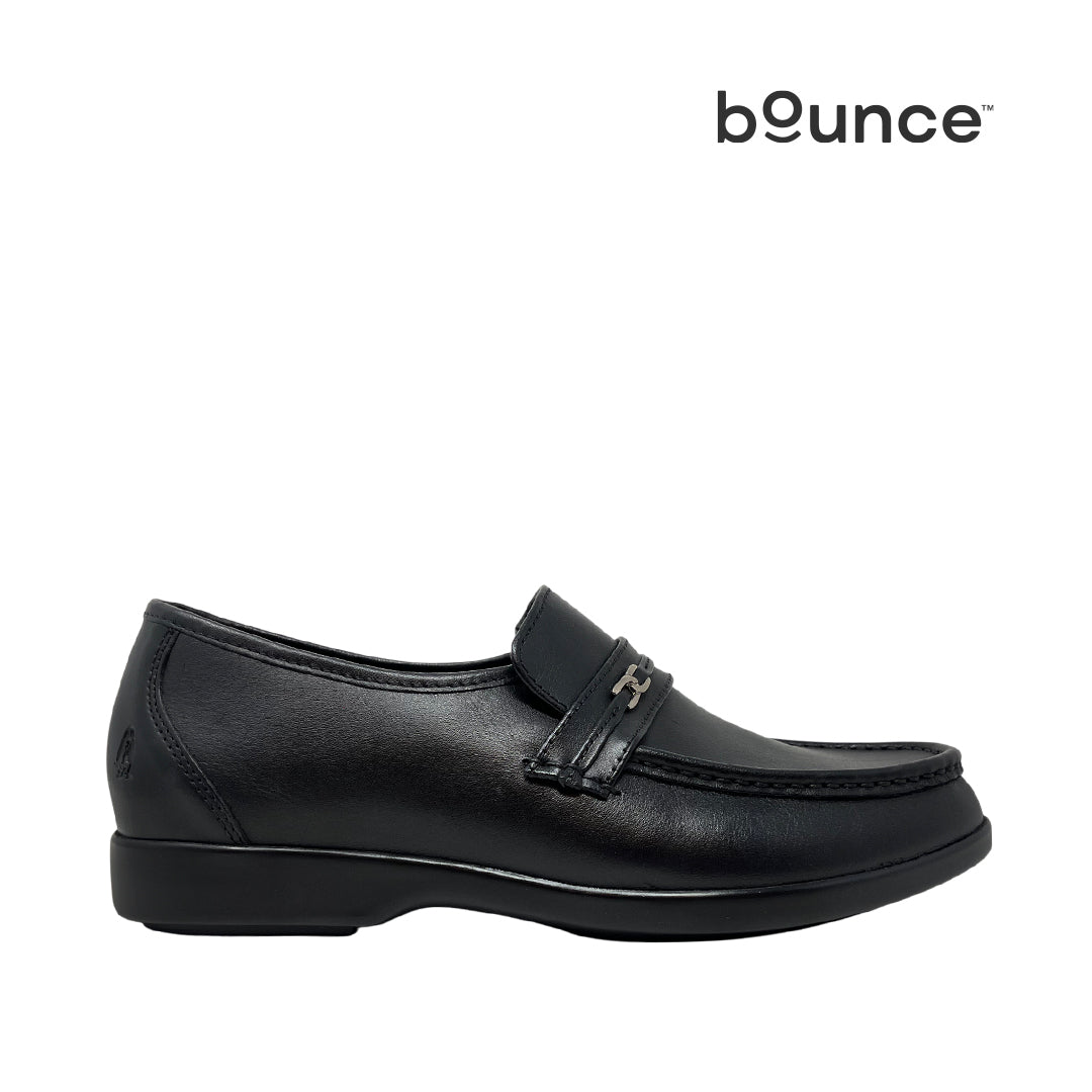 Loafers Sutton Moc Toe Slip para hombre en color negro, con tecnología Bounce™. Su plantilla extraíble de alta memoria ofrece rebote de energía en cada paso, comodidad durante todo el día y recuperación de forma tras el uso, con sensación estable al caminar.