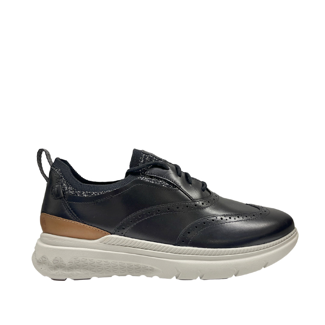 Casuales Excel Wingtip para hombre en color negro con tecnología The Body Shoe™ (antimicrobiano y absorción de humedad). Ranuras de flexión para mayor comodidad y movimiento fluido en cada paso.